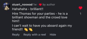 When I’m not doing events, you can probably find me on stage in a comedy club somewhere in Europe or Asia, testing new ideas and having fun with the crowd.