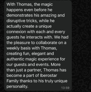 My name’s Thomas. I’ve been a magician and mentalist for the last ten years, and a full-time traveler for the last five. I’ve been lucky to perform everywhere — from Paris to Mallorca, Dubai to Bangkok, New York, London, Switzerland, and Spain. Honestly, I just feel blessed to do what I do.